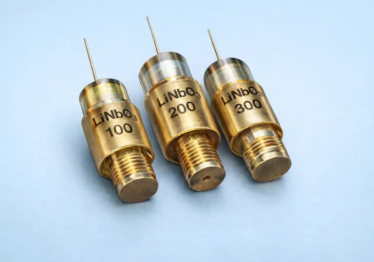 Press-focused ultrahigh frequency LiNbO₃ transducer with 100 MHz frequency, designed for ophthalmic imaging and medical diagnostics.